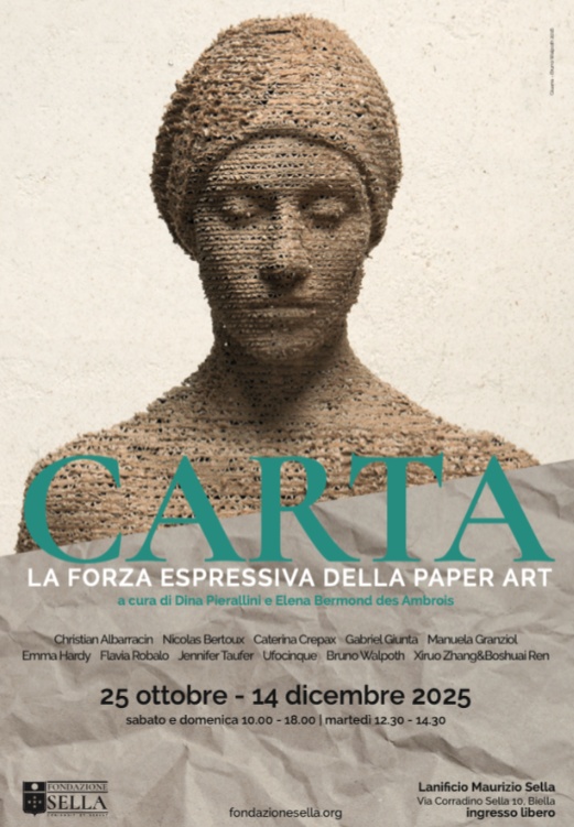 Dal 25 ottobre al 14 dicembre, presso la sala mostre del Lanificio Maurizio Sella di Biella, sarà aperta al pubblico la mostra CARTA. La forza espressiva della Paper Art