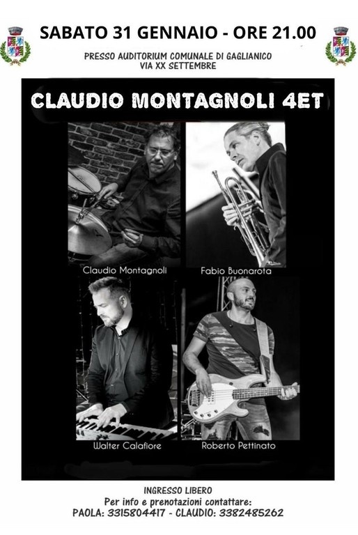 Claudio Montagnoli alla batteria, Fabio Buonarota alla tromba, Valter Calafiore al piano, Roberto Pettinato al contrabbasso, repertorio soul funk