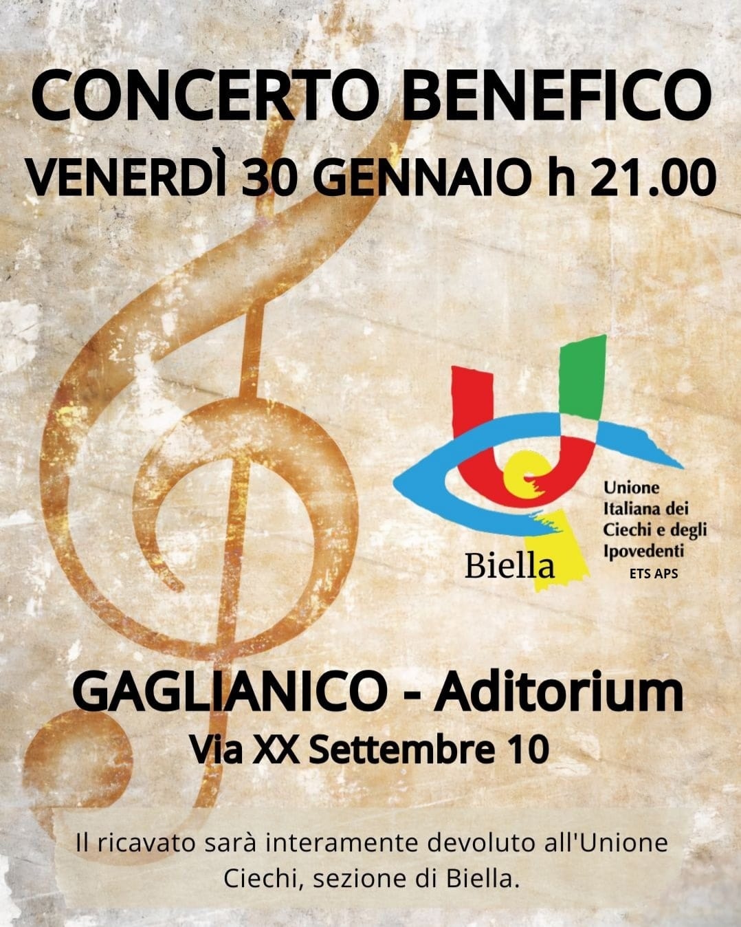 Concerto il cui ricavato andrà all'Unione Ciechi di Biella