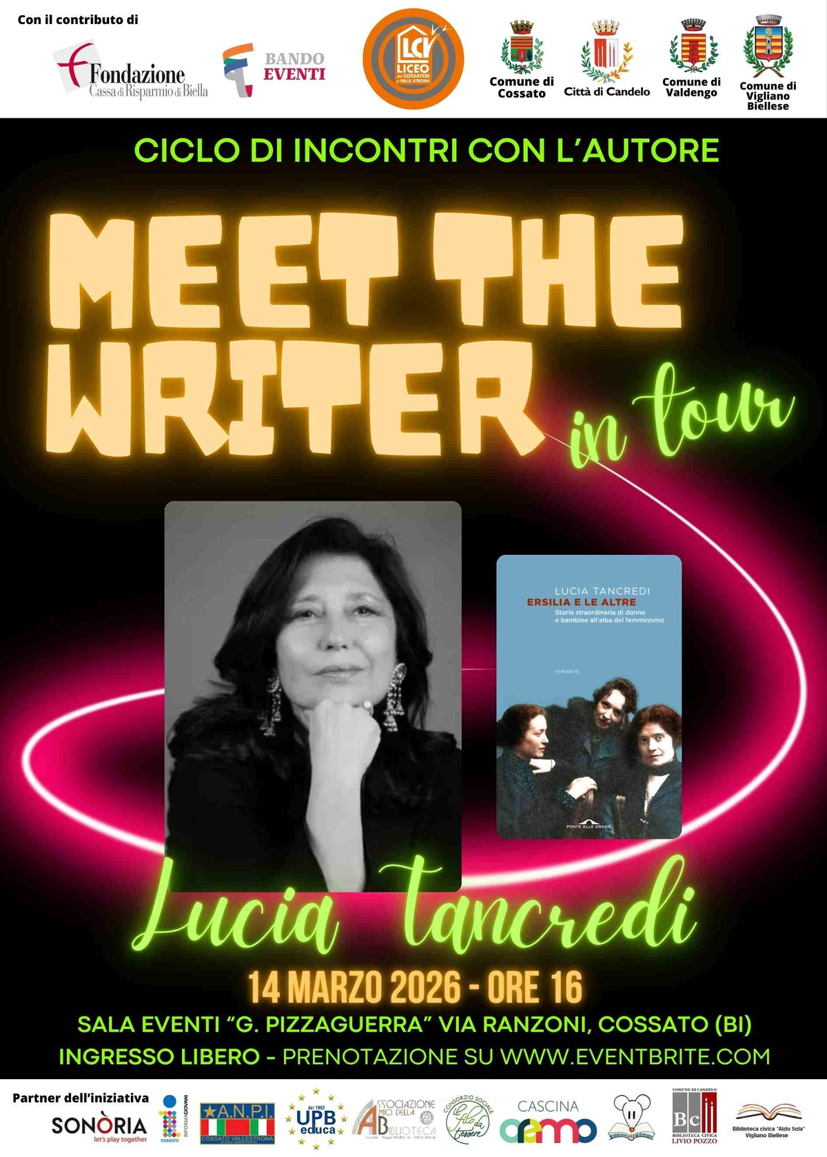 Meet the writer è il ciclo di incontri con l'autore organizzato dalla Biblioteca del Liceo del Cossatese e Vallestrona grazie al contributo della Fondazione Cassa di Risparmio di Biella nell'ambito del Bando Eventi.
