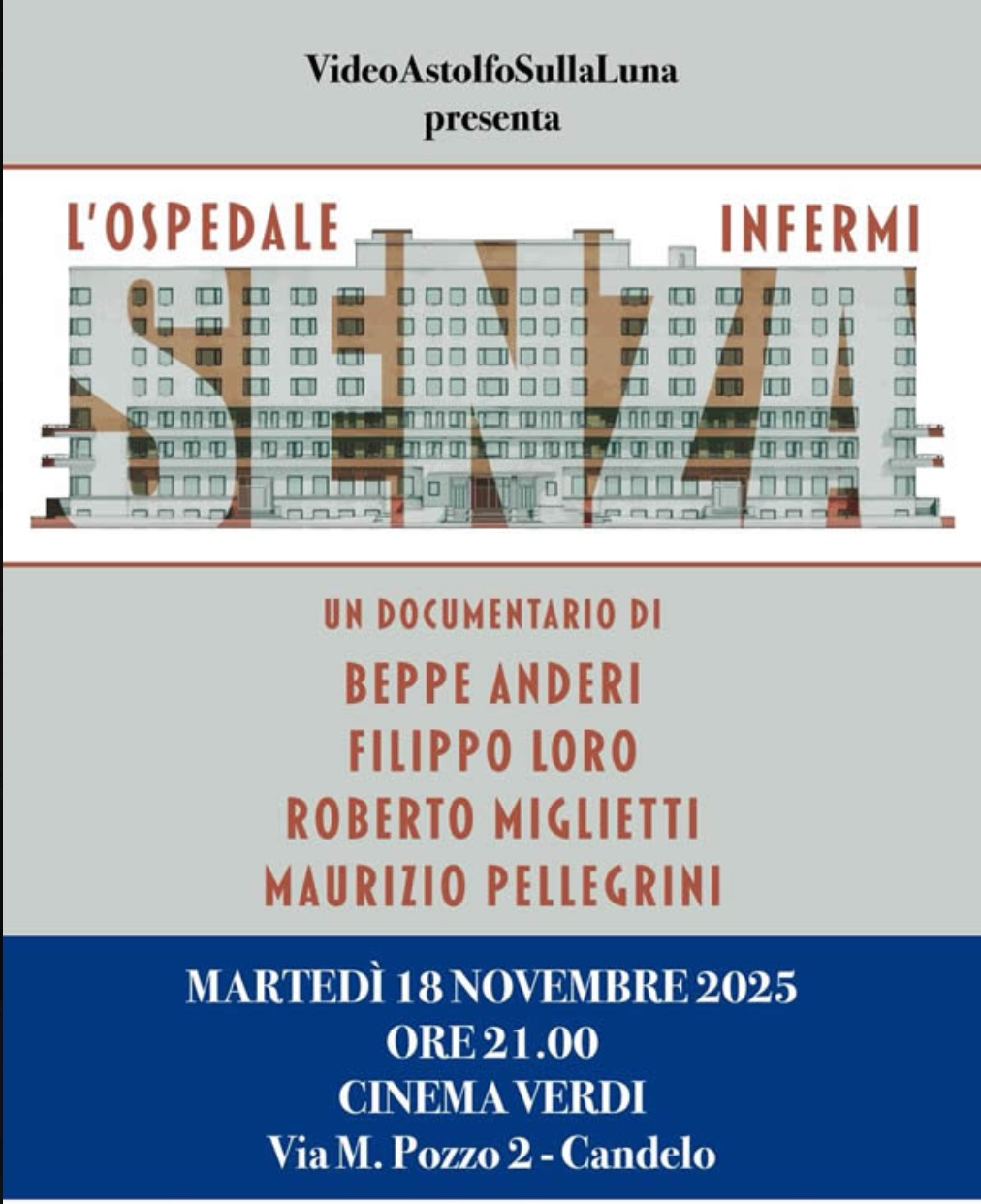 Proiezione del documentario Ospedale Senza Infermi, prodotto da VideoAstolfoSullaLuna.