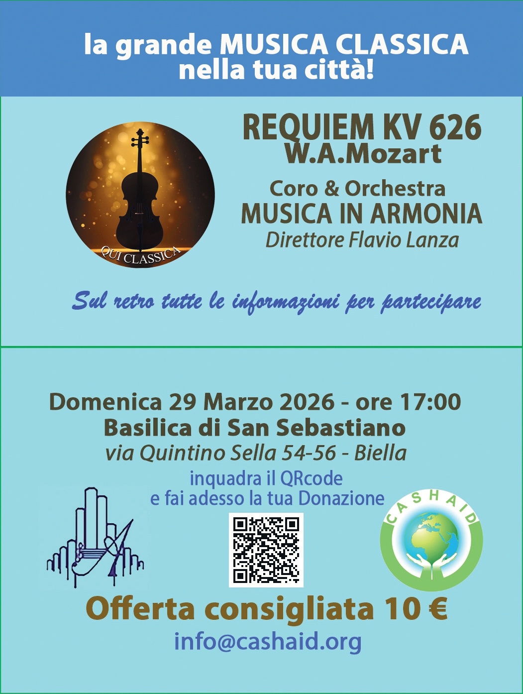 Nella splendida cornice della Basilica di San Sebastiano in Biella presentiamo una tra le più magnifiche opere della Musica Classica di tutti i tempi: il REQUIEM kv 626 di W.A.Mozart.