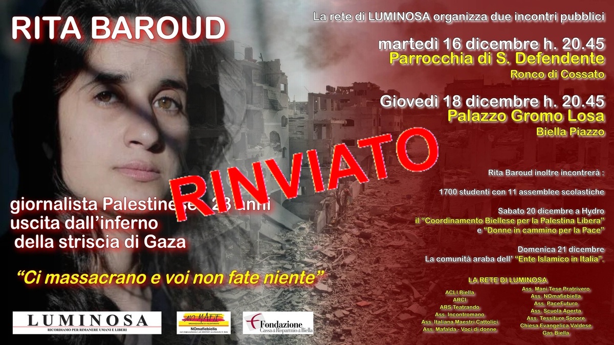 Rita Baruod è una giornalista palestinese di 23 anni, è la protagonista dell'incontro pubblico "Ci massacrano e voi non fate niente".