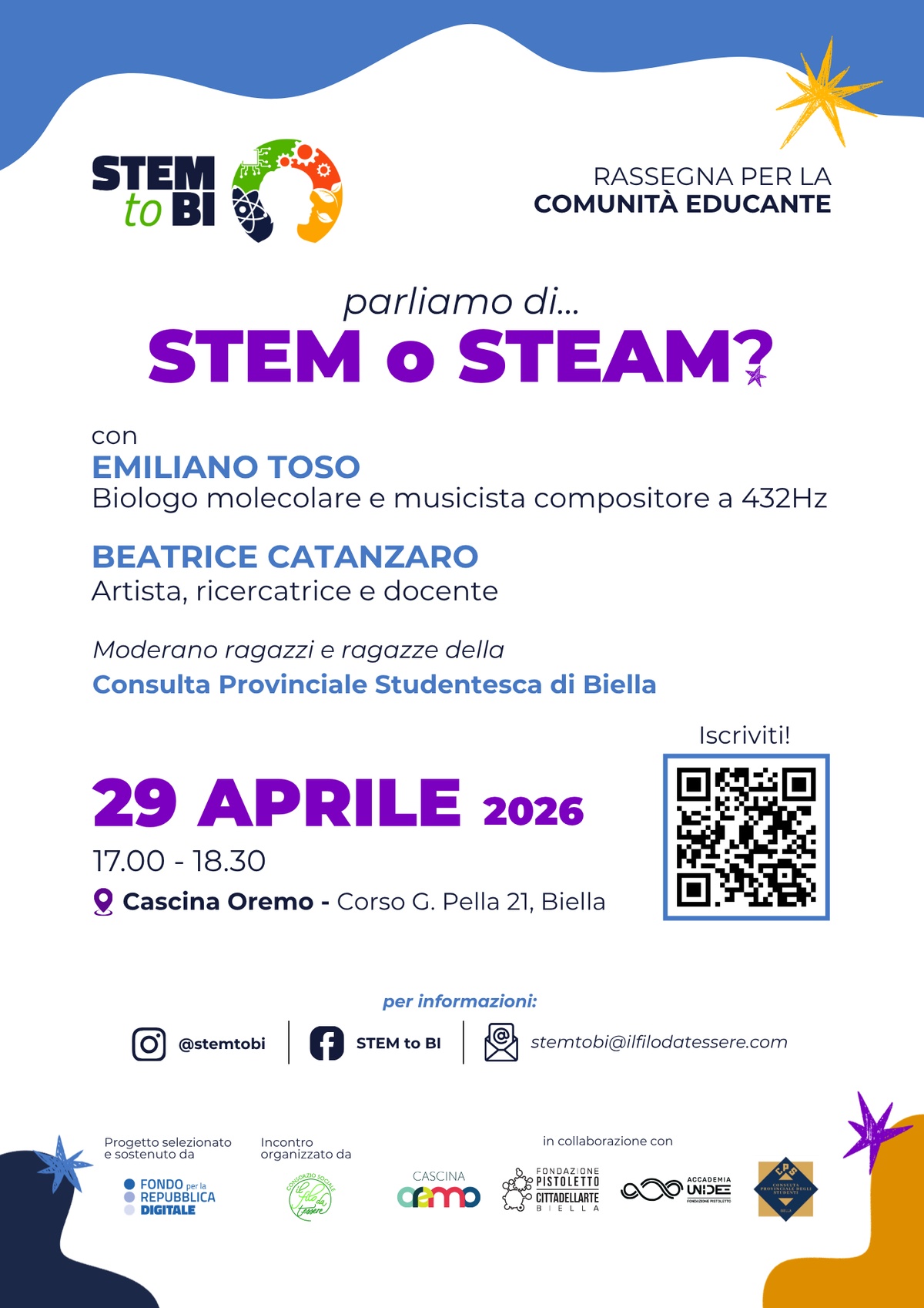 La partecipazione è gratuita, con iscrizione al link: Parliamo di… STEM o STEAM?